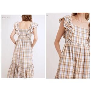 Madewell Ruffle-Sleeve Plaid Tiered Midi Dress in Plaid 14 Preppy Cottagecore 51 in longB1