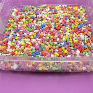 Bright multicolor decorative confetti rocks for festive displays. Use the multicolor mix to add vibrant color to centerpieces, tablescapes, or craft projects. Easy to scatter and pairs well with themed decorations. Includes a mix of pink, red, green, blue, yellow, purple, white and orange tones. Fun colors! 10.8 oz bag.