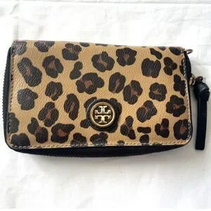 Tory Burch 6" Wallet Cheetah Leopard All OverPrint Zip Around Wallet Vintage Y2K.