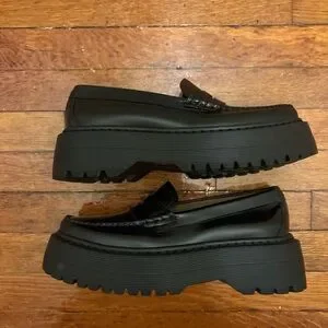 Step up your style with these sleek black chunky loafers. Perfect for any occasion, these shoes offer both comfort and a modern look. As is, unworn, no box, brand new