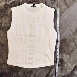 Express Brand New Fitted Crew Neck Corset Tank - White - Size Small