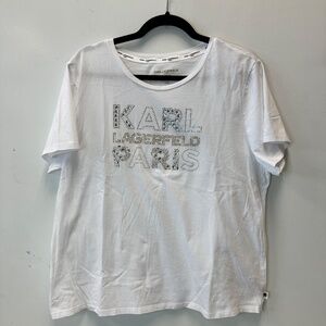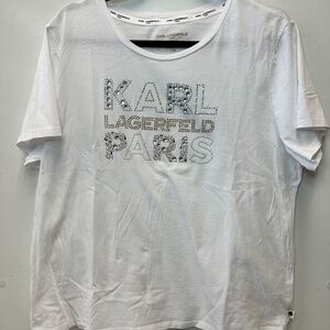 Karl Lagerfeld Paris White T-Shirt Women's Size XL Rhinestone Bling