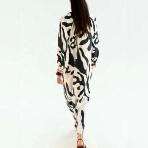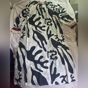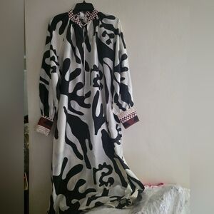 H&M Special Edition Loose Fit Dress Long Sleeves Cream Black Red Nwt