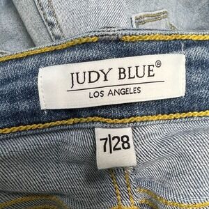 Judy Blue Straight Fit Jeans Womens 7/28 Blue Cutoff Denim High Rise V Front