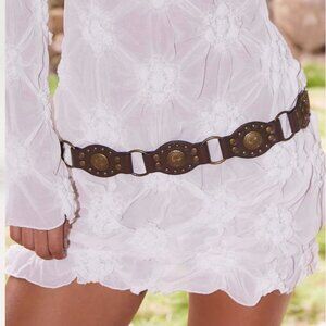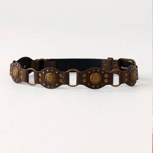 The Laina Ring Belt is the perfect finishing touch for your evening looks. Crafted from brown PU, it adds a sleek and stylish edge to any outfit.