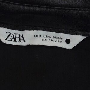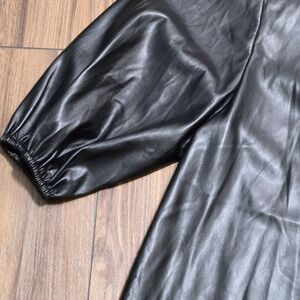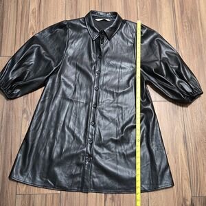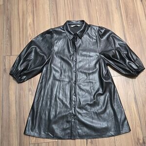 Zara Black Faux Leather Puff Sleeve Button Down Shirt Dress TunicLarge 4369/250