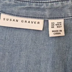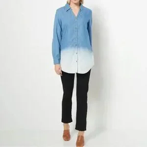 Susan Graver Chambray Dip-Dyed Denim Ombre Button Down Tunic Shirt