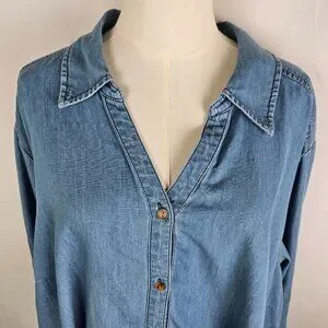 tags: lagenlook, grunge, casual shirt, denim shirt, chambray shirt, western, Y2K, natural shirt, boho, denim button down, ombre shirt, casual denim shirt, women's plus size, gradient shirt