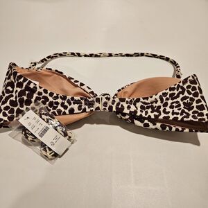 NWT J.Crew Knotted Bandeau Bikini Top Leopard Convertible Straps, Size M