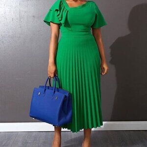 [ORIGINAL_TITLE: Women's Short Sleeve Asymmetrical Ruffles High Waist Pleated Hem Midi Spring Dre]