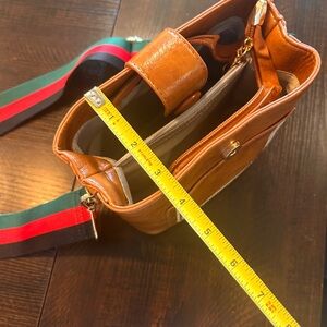 Petite Brown Leather Crossbody Bag with Striped Strap