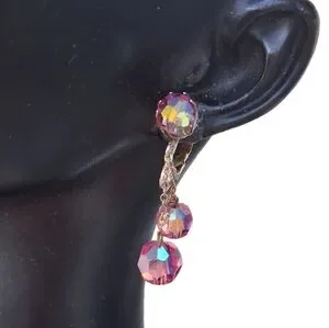 Vintage 1950s/60s Pink Aurora Borealis Crystal Dangle Clip-On Earrings