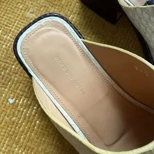 Dries Van Noten Cream & Dark Brown Croc-Embossed Mule Heels 6.5 36 1/2