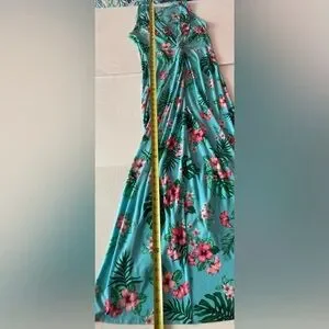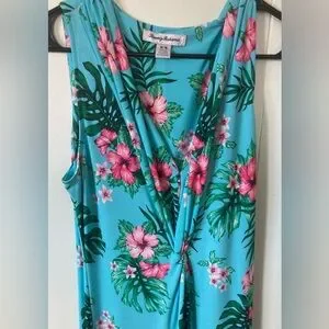 Tommy Bahama SZ M Vibrant maxi dress with tropical floral design. Sleeveless and elegant. Deep V-Neck and a twist front that provides artful shaping.Perfect for warm days.Excellent Condition a real beauty!