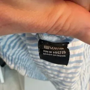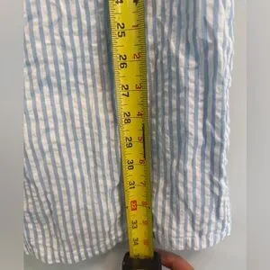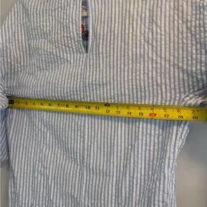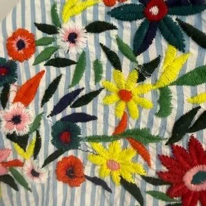 Song of Style Blue White Seersucker Stripe Floral Embroidery Mini Dress Small
