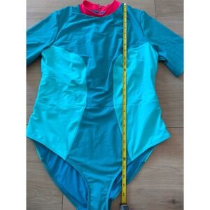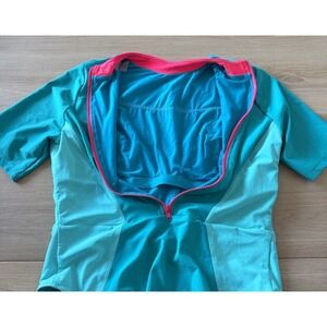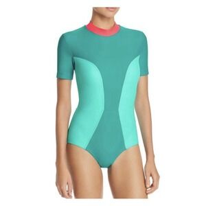 Chromat Womens Colorblock Short Sleeve One Piece Swimsuit Teal Pink 1X