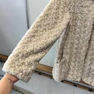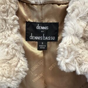 Dennis Basso, fully lined, faux fur, cream swirl coat. This is a size small, but it fit on almost all of us at the shop, we range from small to large. It's in EXCELLENT condition! This brand is so bougie, it comes with its own hanger!!