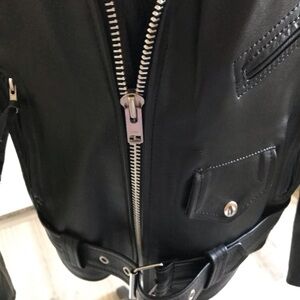 Shaf Black Motorcycle Biker Leather Jacket Men’s Size 42 NWOT Belted