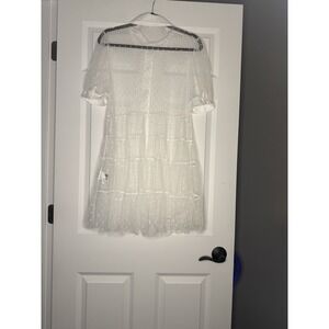 SHEIN Sheer Short Sleeve Button Down Dress White Polka Dot Large