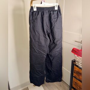 Flowing wide leg pants with an elastic waist for easy all-day comfort. Soft black fabric drapes cleanly for a polished, versatile look. Pair with blouses or tees for casual or elevated outfits.