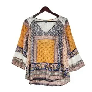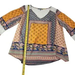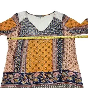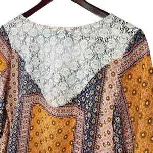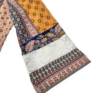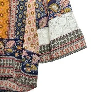 Figueroa & Flower Boho Patchwork Lace Trim Blouse Small V-Neck Flowy Festival