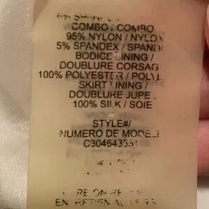 Beautiful dress with no flaws. Clasp may need to be bent a little as it can be tricky to hook. Black mesh upper back and bottom lining. Please see photos for more.