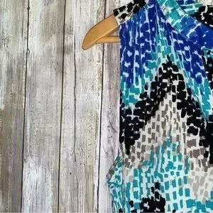 Market & Spruce Blue & Grey Chevron Sleeveless Blouse