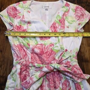 Isaac Mizrahi White Dress with Pink Floral Print Size 4