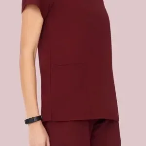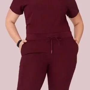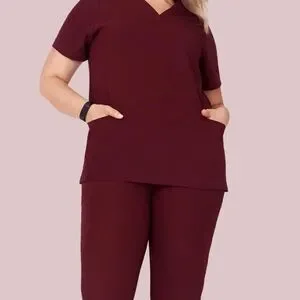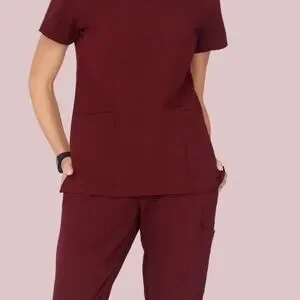 For all the medical professionals out there, we've got a perfect scrub set for you! This MANDALA Scrub Set includes a 6 pocket V Neck Top and spill resistant, 4-way stretch, breathable fabric and feature ribbed elastic ankle cuffs 9 Pocket Jogger Pants spill resistant, both in size Small. The set comes in a beautiful Wine color and is made of high-quality 75% Polyester/ 19% Viscose/ 6% Spandex material that guarantees comfort throughout your long working hours. The set is designed for women and features a Solid pattern that will make you look stylish and professional at the same time.