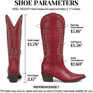 These cowgirl boots feature a hidden stretch design that expands to fit most calf sizes, ensuring a snug fit. The V-shaped shaft adds a chic and stylish touch, enhancing the overall look while making your feet appear elegant and sexy.