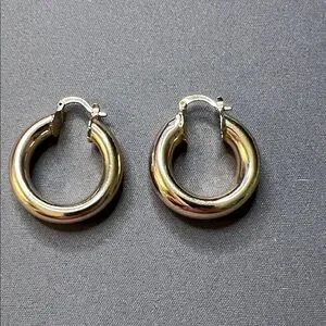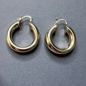 Elegant gold-tone chunky hoop earrings with a smooth, polished finish. Lightweight and comfortable for daily wear. Secure hinged closure for easy on and off. Perfect to pair with both casual and dressy looks.