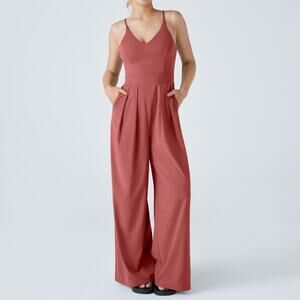 Harala Kapok Red Breezeful Backless Quick Dry Pleated Wide Leg Jumpsuit Medium