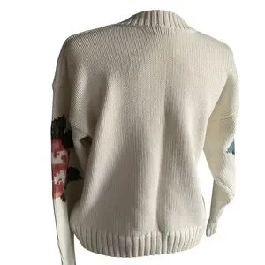 Mexx Sweater 100% Cotton Floral Motifs Jacquard 80s 90s MultiColor Pink Cream S