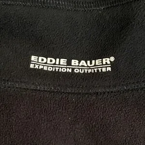 Branding and labels: First Ascent logo on the chest pocket, Eddie Bauer Expedition Outfitter print at the back neck, interior First Ascent Eddie Bauer mens large size print, and woven care and content tag.
