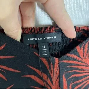 New! Universal Standard Promenade Linen Jumpsuit / Romper in the Bohem palm tree print. Size 18-20 (M in Universal Standard sizing). 55% Linen, 42% Rayon, 3% Elastane.