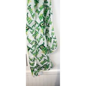 Lightweight St. Patrick's Day scarf features an all-over print of green striped leprechaun top hats with yellow shamrock accents. Crafted from a semi-sheer, breathable fabric, this festive accessory is perfect for holiday parades, parties, or adding a touch of Irish luck to any outfit. The white base allows the vibrant green and yellow graphics to stand out, while the long rectangular shape offers versatile styling options.