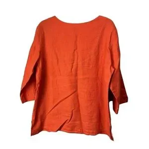 Coldwater Creek Women's Burnt Orange Linen Split-Neck Tunic