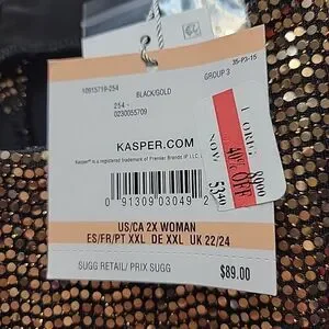 Kasper Plus Size 2X Gold & Black Metallic Top Blouse Party Festive NEW