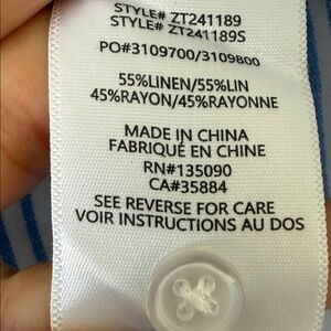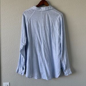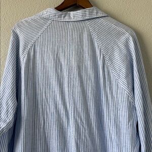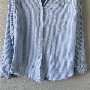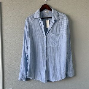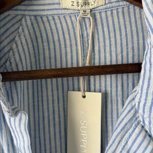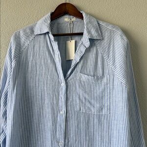 Z Supply The Perfect Line Top Bay Blue Striped Linen Blend Button Down M