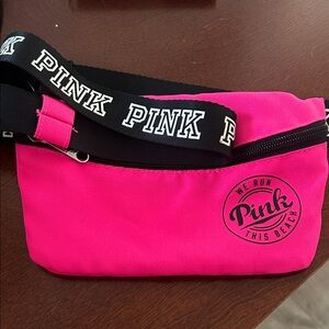 PINK Victoria's Secret Neon Pink Logo Waist Bag with Black Branded Strap Bundle