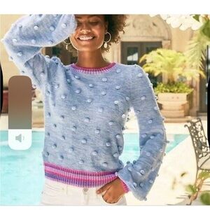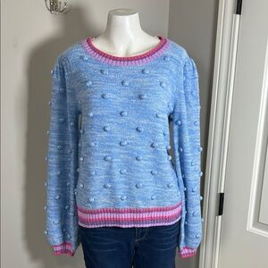 Lilly Pulitzer Verna Sweater Pom Pom Blue Pink Womens Crewneck Sz M