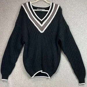 Vintage varsity style sweater M oversized chunky cable open knit preppy retro