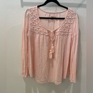 Mossimo Women's Blush Pink Long Bell Sleeve Boho/Peasant Top Blouse.