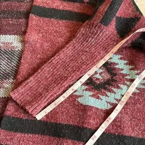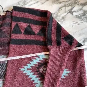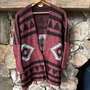 debut Maroon Aztec Open-Front Cardigan with Black and Light Blue Accents