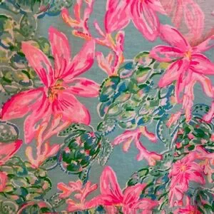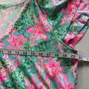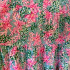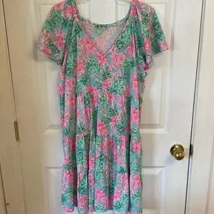 Lilly Pulitzer Green & Hot Pink Floral Flutter-Sleeve Tiered Dress