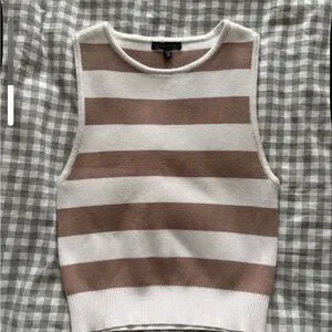 Sleeveless knit tank with wide horizontal stripes. Crew neckline and soft knit fabric. Simple, versatile piece for layering or wearing solo.