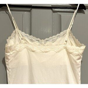 Aeropostale Lace Trim Cami Tank Size Large Cream Y2K Preppy 90S Layering Coquette