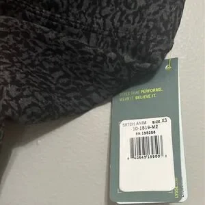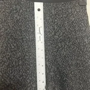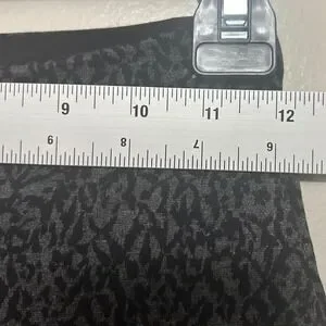 Embrace a sleek, sculpted silhouette with these high-waisted leggings that blend performance with high-fashion flair. The custom-developed cotton-spandex fabric offers a tighter knit for a secure, no-see-through fit while providing hourglass shaping and extra stretch. A sophisticated charcoal and black animal sketch print adds a modern edge to your activewear or casual rotation. These leggings are brand new with tags and ready to elevate your wardrobe. Perfect for yoga sessions, running errands in style, or a casual coffee date.