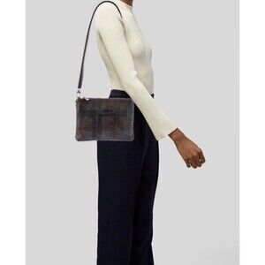 NUMERO 10 Shoulder Bag Embossed Leather Faded Plaid Design Good Used Condition