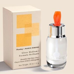 The Pleasing x Marco Ribeiro Gloss Medium can be used across lips, eyes and skin by itself to create radiance, or to elevate pigments and powders with radiant shiny, sheer finish. Its formula is intended to be tangible to become a useful tool to fast track unique creative expression and experimentation.